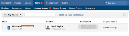 When devices are pending approval, the number of devices pending is shown on the Team tab, making it easy to see when there are devices pending approval.