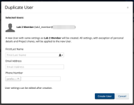 New users can be created as copies of an existing user. The following information is carried over from the existing user: