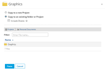 The file browser tree used to locate items when copying, moving, and performing other project item functions has been replaced with a list view which provides improved performance as well as the ability to sort and filter.