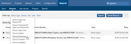 We've updated the Workplace Online Devices report to include a new Device Renamed event. This allows you to identify and filter by this event: