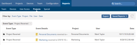The information related to project reverted events in Project reports has been expanded to include event-specific information: