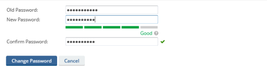 When your entries match, a green check displays next to the Confirm Password field and the Change Password button
