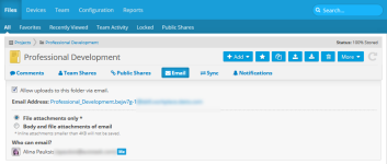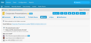 The Uploading files to a project or folder via email interface has been streamlined, and now displays an explicit list of who can upload files via email when this feature is enabled: