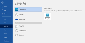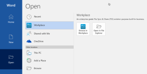 Workplace shows as a "Place" in the Office Open and Save As dialog windows, allowing you quick and easy access to Workplace directly from within the Microsoft Office applications.