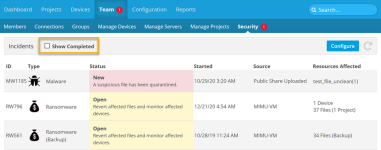 We've updated the Security page display to show only the incidents that are not in a Complete state.