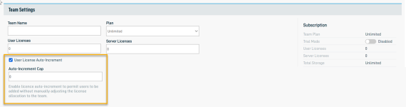 Adjusting team license allocation every time a user is added can be...tedious. In this release, we've added a new license auto-increment feature to the Workplace Manager Create or edit a team page. Whether you're creating a new team or editing an existing one, you can enable this feature by selecting the corresponding check box. Then enter the upper limit of licenses you wish to allow the team to use. No one will able to exceed that cap, but licenses can be added with or without your interaction up to the preset limit.