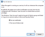 The Run As Service feature now has the option to run as LocalSystem (the default on previous versions of Workplace Desktop) or as the Windows user under which Workplace Desktop is running.