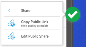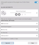 The create/edit items for public shares will open the public share interface described in Managing project, folder, and file public shares.