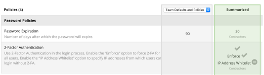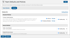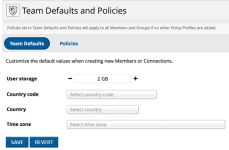 The default policies are controlled in the Team Defaults and Policies section and apply to all users in the team. Additionally, policy profiles can be created and these will always override the team defaults.