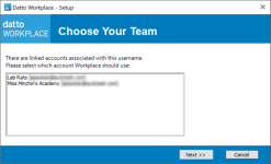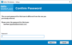 - Click Next. If the account you've selected has a different password from the one you entered in step 4, this will open the window below: