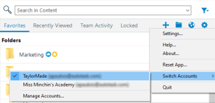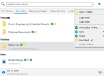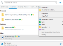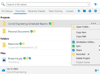 - Use these context menus to quickly and easily perform common functions like sharing with your team, creating and managing public shares, file locking, and marking items as favorites.