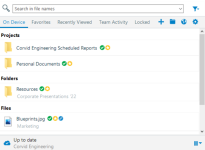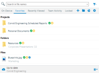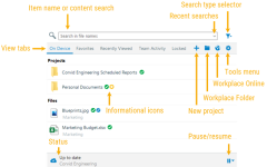An intuitive user interface makes is easy to locate what you and your team have worked on recently in the Workplace app. Favorites and locked files each have their own display tab as well. The search feature allow you to find your items by name or by name and file content.