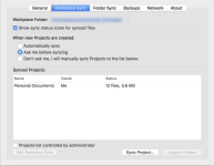 Select the Workplace Sync tab. The Synced Projects area displays all the projects currently syncing:
