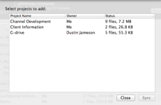 To add an unsynced project, select the project(s) that you want to add and click Full Sync (always available) or Selective Sync (available when only one project is selected: