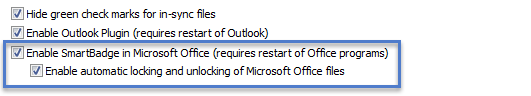 When you open a Microsoft Work, Excel or PowerPoint document in a supported version of Microsoft Office, SmartBadge will be displayed in the form of an icon indicating of the status of the file. Clicking on SmartBadge will show further information and options, dependent on the current state of the file.
