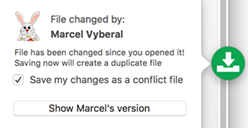 file will be appended with your name. • Show the other user's version. This will reload the most recent version of the file. |