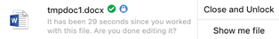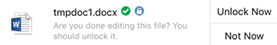• Unlock Now. This unlocks the file, whether the file is currently open on your computer or not. • Not now. This begins a 24-hour timer, after which this notification will appear again. |
