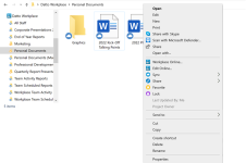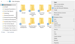 Workplace Folder context menu options