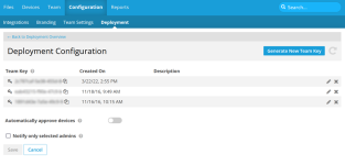 NOTE Deleting a team key will not affect devices already configured using that key. It will only prevent devices from being configured with that key in the future.