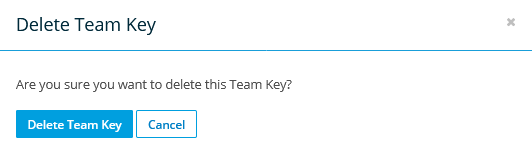 - Click the X icon corresponding to the team key you wish to delete. This will open the Delete Team Key popup: