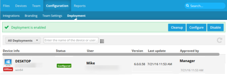 NOTE Your management options depend on the current status of the device, as well as the preferences you've set on the Configure deployment page.