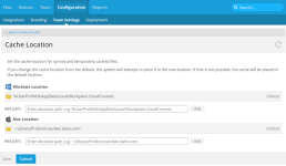 - The path(s) are validated by Workplace. If the path(s) are found to be invalid, the default cache location will be used.
