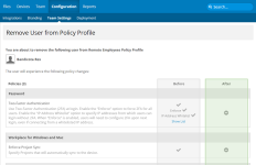 NOTE This page displays a "before and after" snapshot of the policy changes that will be applied if you proceed.