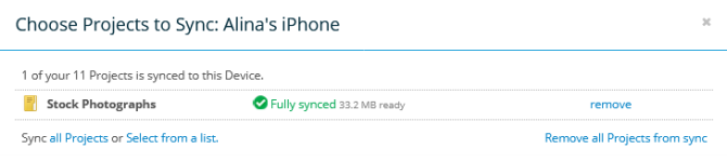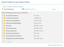 To choose specific projects to sync, click the Select from a list link to expand the popup window, then complete steps 3 and 4. - Select the projects you want to sync to the device.