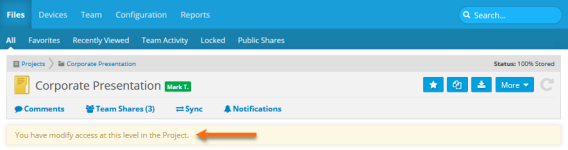 PERMISSIONS Depending on your permissions for specific projects (e.g. Read Only, Create & Modify, etc.) some of the functions described in this topic may not be accessible to you. Refer to Manage project, folder, and file team shares for more information.