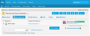 Share | Team Share This option is only available if you are the project owner or Reshare permissions were granted when the folder was shared with you. |