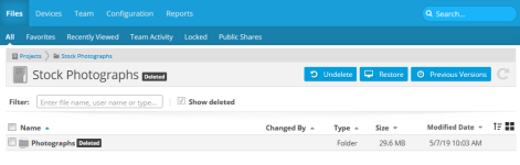 Workplace retains all deleted files for at least 180 days, allowing you to easily restore projects, folders or files if necessary.
