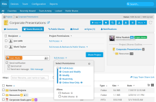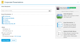 - Click the access level for the share recipient(s) in the (Project or Folder) Permissions column.