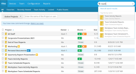 - Click the view all search results link to open the Search Results page. If you are currently viewing a project or folder, you can select the Search in Project/Folder Name option to restrict the search.