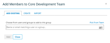- To add existing users, begin typing the name of the person you want to add and select it from the dropdown, or click the