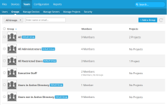You'll use this page to view and/or manage your team's groups. A group is a collection of users. You can share projects or folders with groups, which makes sharing simpler and more convenient. You can also email an entire group, which streamlines communication.