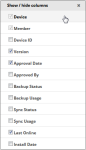 - Select the check boxes corresponding to the columns you want to display. The device list will update automatically.