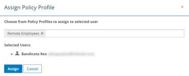 NOTE This view will list the policy profiles currently assigned to the user, as well as a list of all individual policies for any profiles that have been assigned to the user. The first column has a dropdown which allows you to select from the policies assigned. The second column shows the policies that are actually applied. Use this list to review the currently applied policies before proceeding.