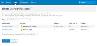 - Select new project owners from the dropdown menus for each project (you can choose yourself), then