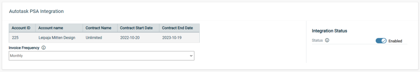 Autotask Integration This section does not display for Internal Use License (IUL) teams. This section does not display unless you have configured your integration with Autotask. |