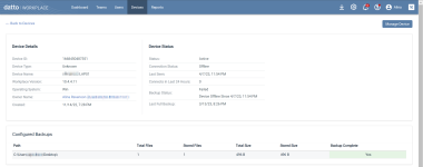 You cannot edit a device here, only view details and manage files that have failed to back up. To manage a client's devices, click the Manage Device button to open the Device Detail page in Workplace Online.