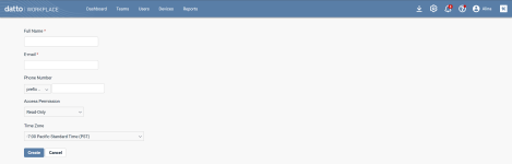 | Full Name* | Enter the first and last name of the new user. This field can't be empty, so you must enter at least one or the other. |