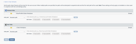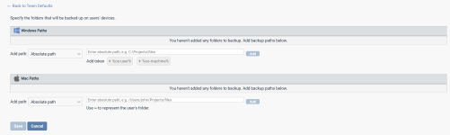 Allows you to specify the folder paths to back up using Workplace for Windows and Mac.