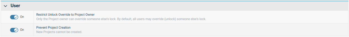 Restrict Unlock Override to Project Owner | Only the owner of a project can override another user's lock. By default, all users with modify or higher permissions to the file may override (unlock) other user's lock. | Toggle the switch to On. |