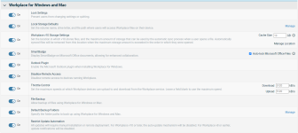 Toggle the switch to On. Then click the Manage link for this policy to set the default location for the Workplace folder on the Manage Workplace Location page, described below. |