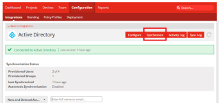 Go to Workplace > Configuration and click the sync icon on the AD tile (or click Manage and then the Sync button).
