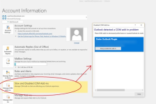 - In the Slow and Disabled COM Add-Ins area, click the Manage COM Add-Ins button. This will open a detail popup: