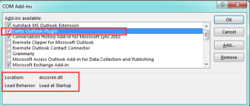 - Click OK to save your settings and close the Manage COM Add-Ins popup.