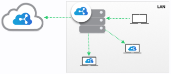 LAN Sync ensures that the sync speed of Workplace devices is maximized while simultaneously minimizing Internet bandwidth usage. Workplace Server syncs with centralized local storage and makes the files stored there available to Workplace devices through the LAN.
