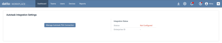 NAVIGATION Workplace Manager > > Autotask Ticketing Integration