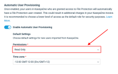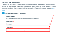 - Select the default permissions and time zone for automatically created users. For more information about permissions, please refer to Security levels and permissions.
